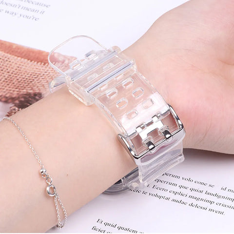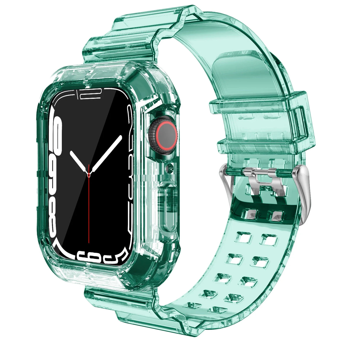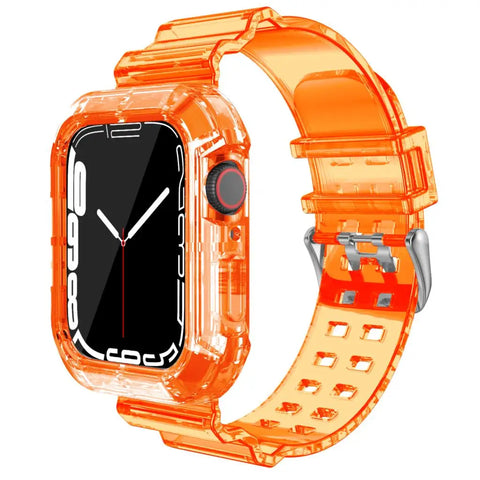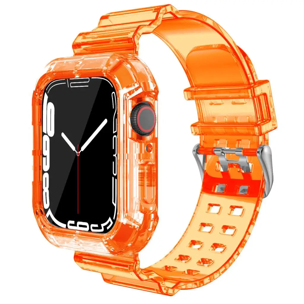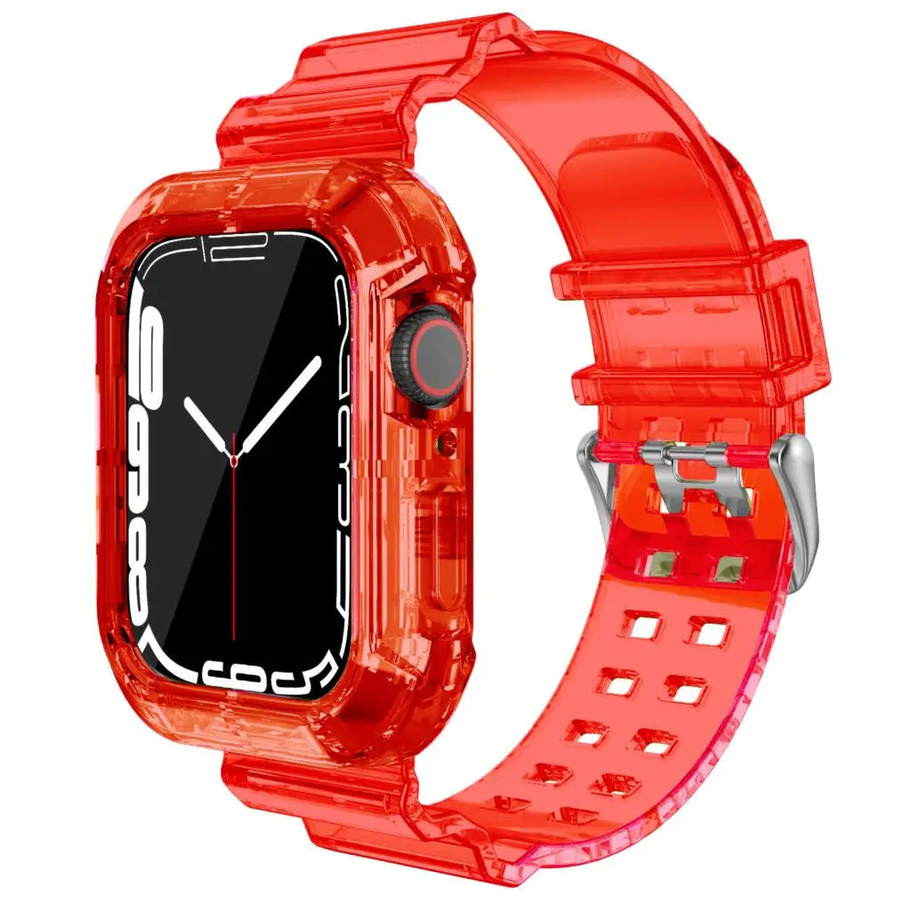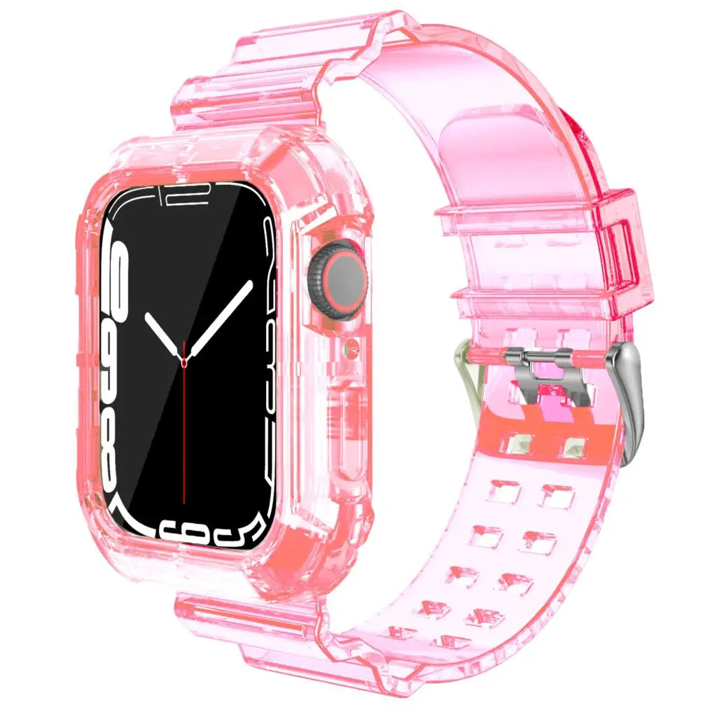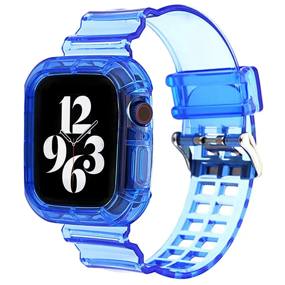 Introducing the perfect companion for your smartwatch, the Case+Strap for Apple Watch. Designed with comfort and style in mind, this replacement band offers a soft silicone feel while keeping your device secure and stylish. Whether you're at the gym or enjoying a night out, this transparent strap seamlessly fits into any lifestyle.
