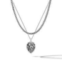 Embrace the timeless protection and strength of St. Michael with this beautifully crafted shield-shaped amulet pendant. Paired with a classic curb chain, it offers a timeless look that complements any style. Made from 925 Sterling Silver, this piece is durable and designed for everyday wear.
