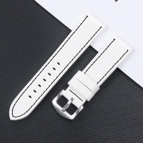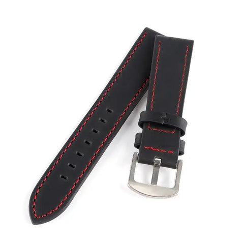 Ticwatch Genuine Leather Band - Classic Elegant Design - black - red / Silver buckle / 24mm