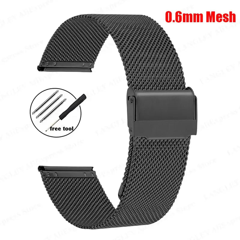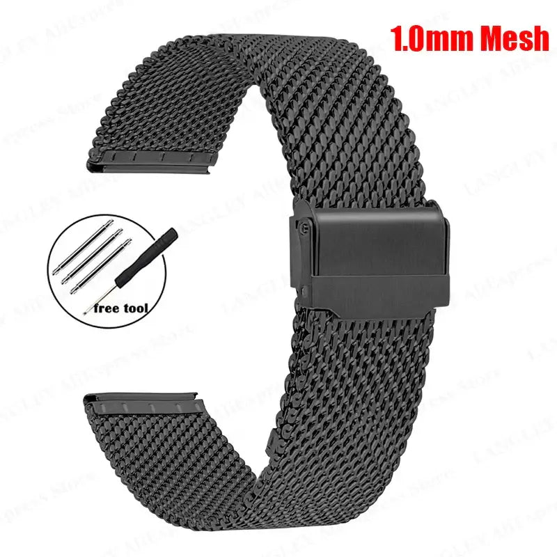 Huawei Watch Milanese Steel Mesh Band - Stylish and Durable - 0.6mm-black / 22mm