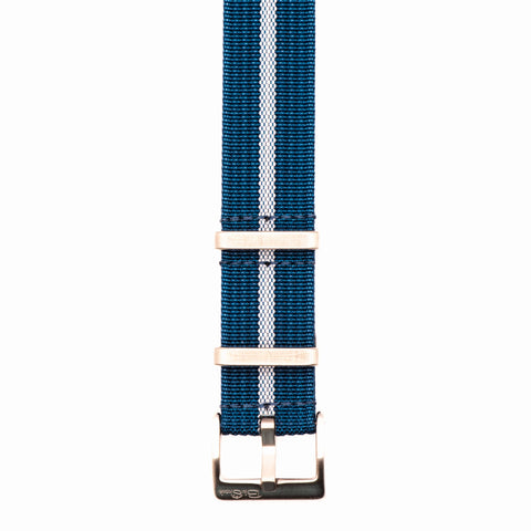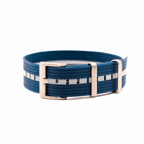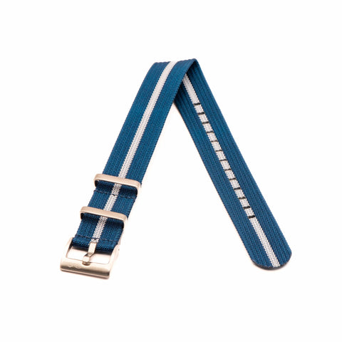Ribbed Single-Pass - Blue & White - 20mm / Brushed