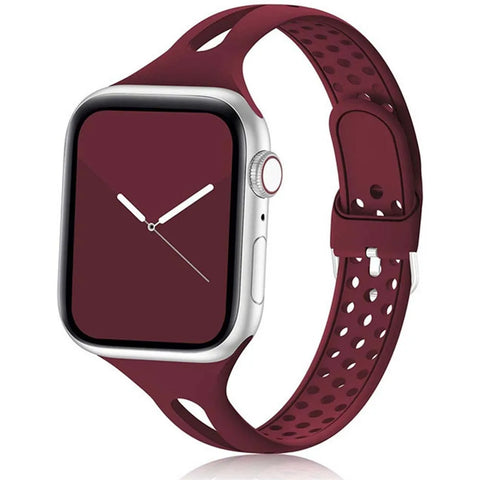 Apple Watch Silicone Strap - Soft Flexible Breathable Band - wine red / 38mm 40mm 41mm (42mm S10)