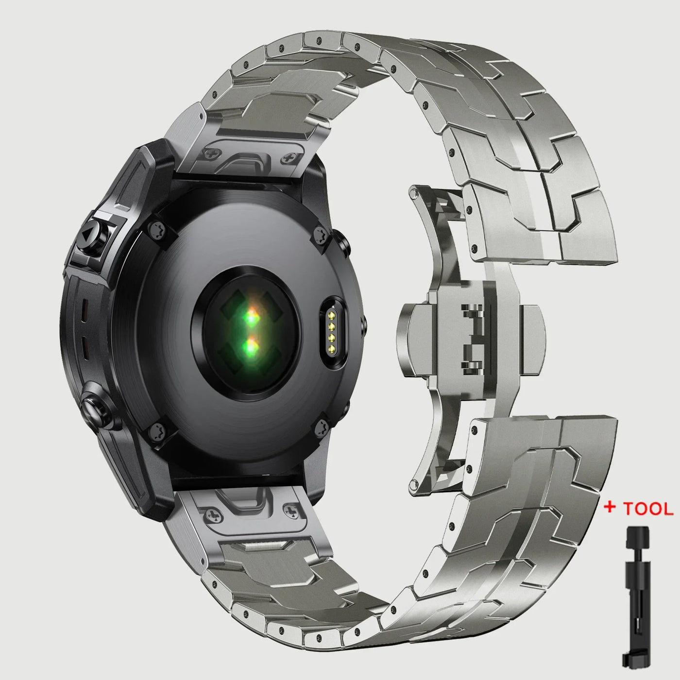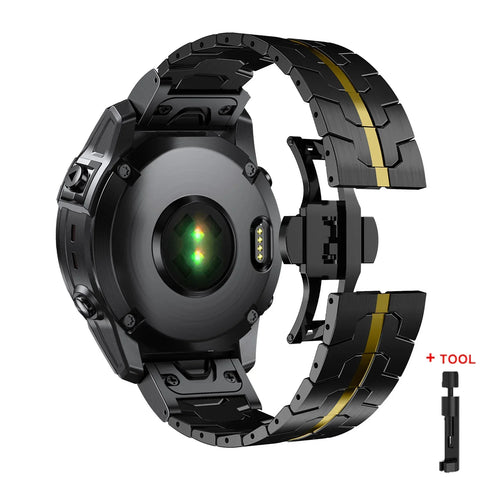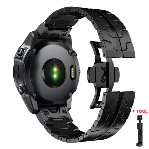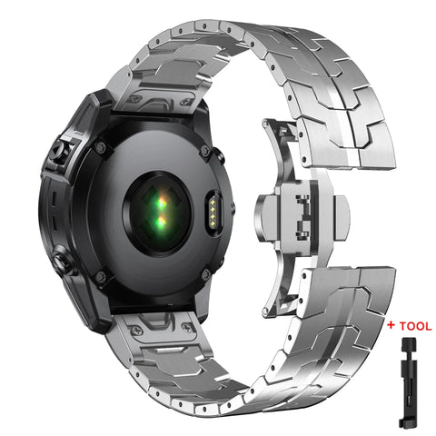 Introducing the 26 22mm QuickFit Metal Strap designed for Garmin watches, a stylish and comfortable replacement band that enhances your smartwatch experience. This durable stainless steel band offers the perfect blend of elegance and functionality, making it a must-have accessory for any smartwatch enthusiast.
