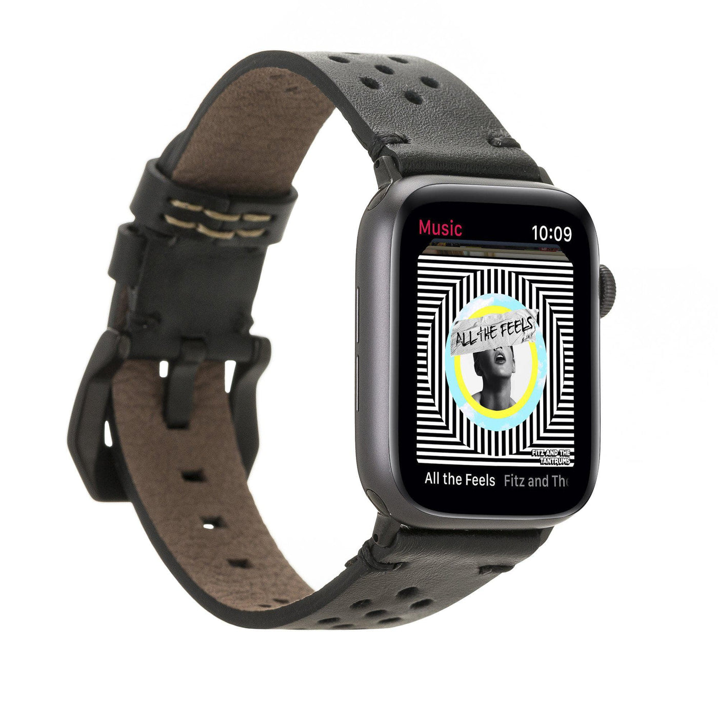 Elevate your Apple Watch with this premium genuine leather band, crafted for both style and durability. Compatible with all Apple Watch models, it’s available in various sizes and buckle colors to match your preference. The leather ages beautifully, adding character over time
