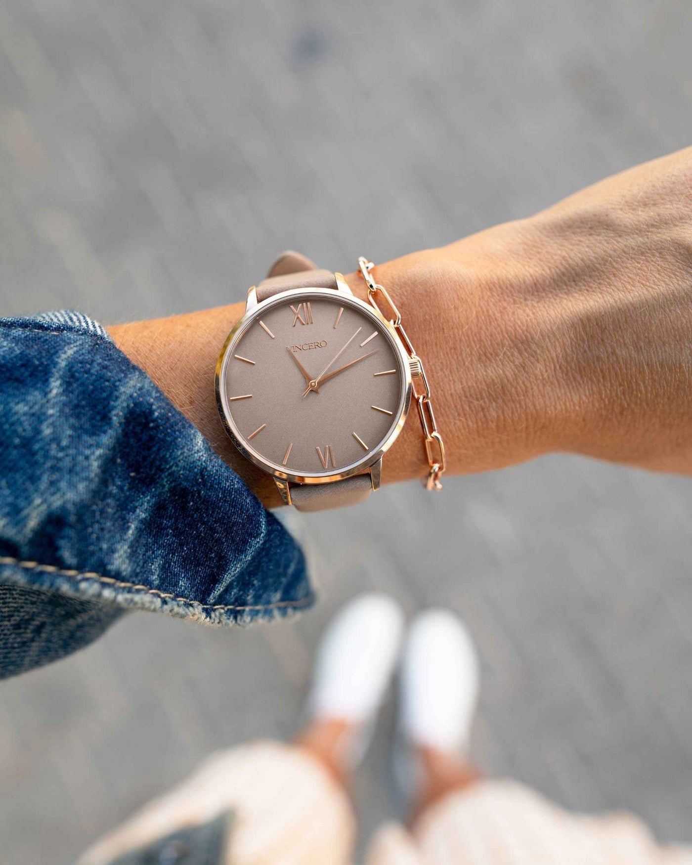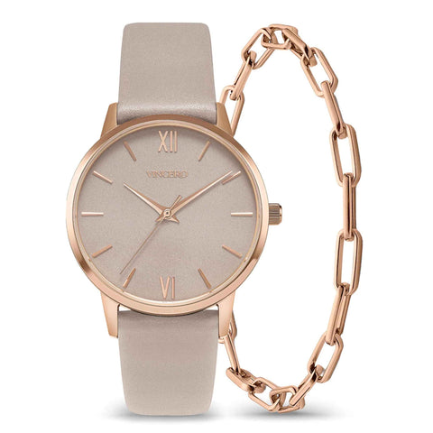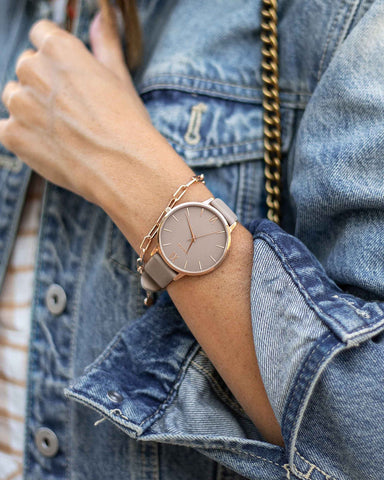 Discover the perfect duo: a chic watch and a stylish chain link bracelet. This pairing effortlessly combines fashion and function, adding a touch of sophistication to any outfit