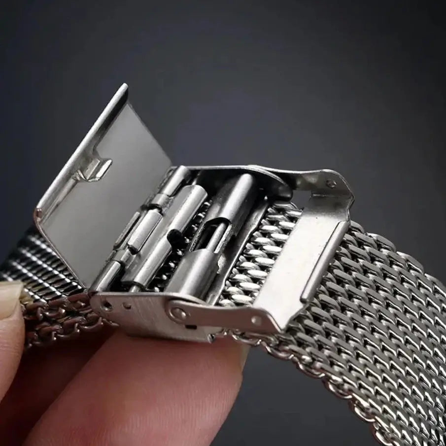 Premium materials – Crafted from high-quality mesh, this band ensures both durability and a sophisticated appearance.