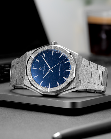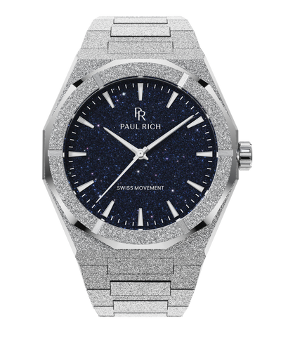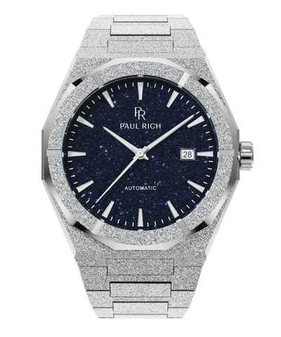 Bold. Rare. Unforgettable. A deep blue aventurine dial that mirrors a midnight sky, wrapped in stainless steel with a frosted finish that shines like diamond dust. This isn’t just a watch—it’s art on your wrist. Elevated. Timeless. Unmatched.