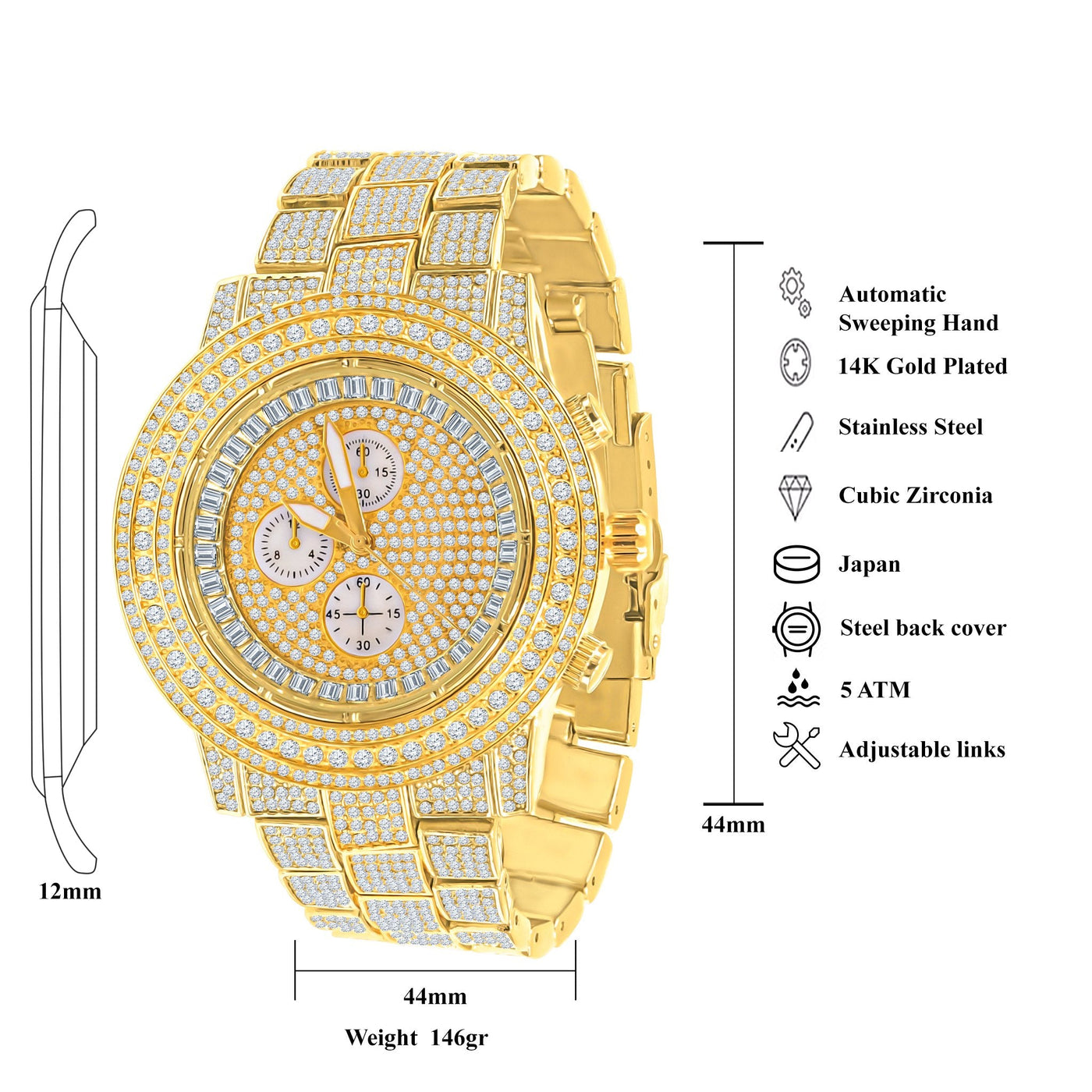 44mm Cz Iced Out Hip Hop Alloy Link Bracelet Watch Style