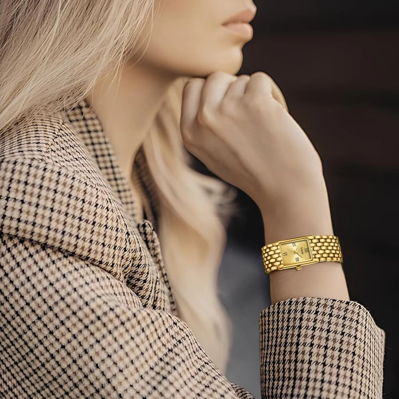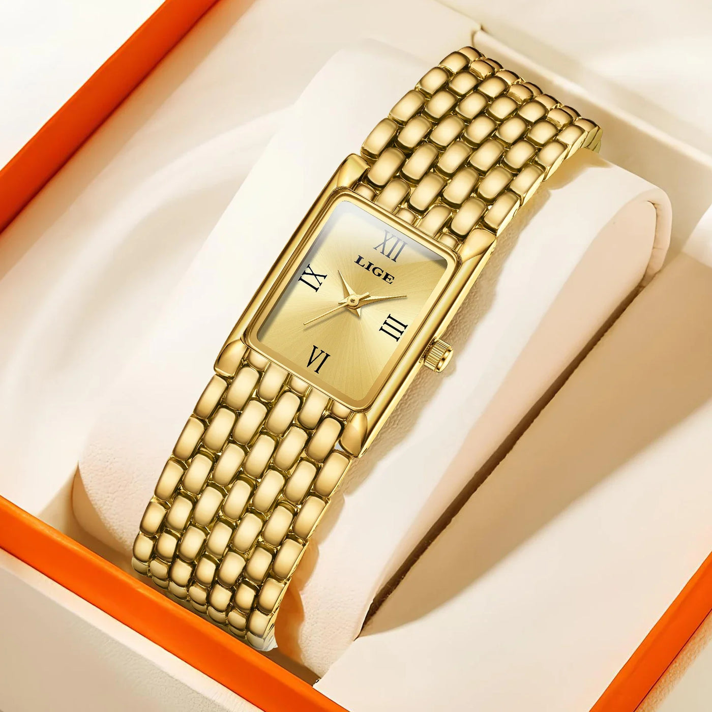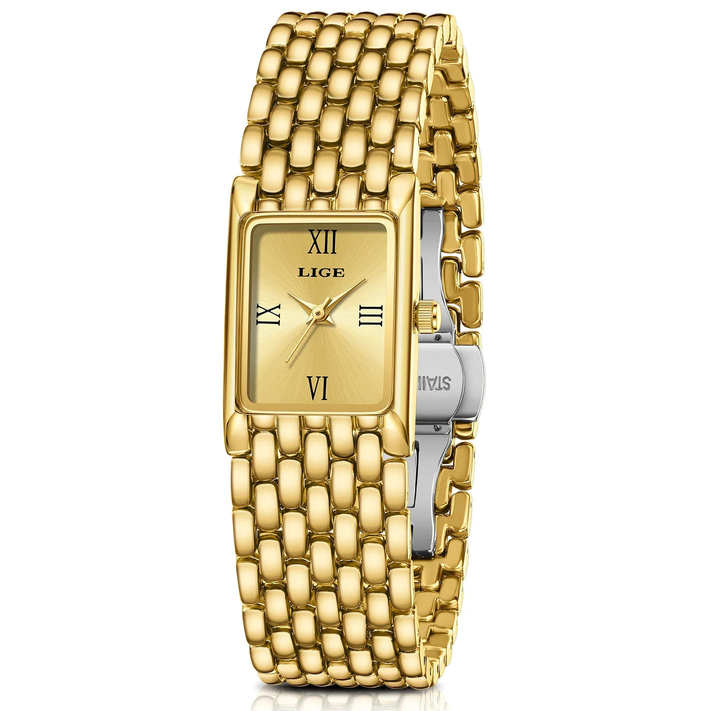 Women's Gold Rectangular Watch Stainless Steel Bracelet Sale