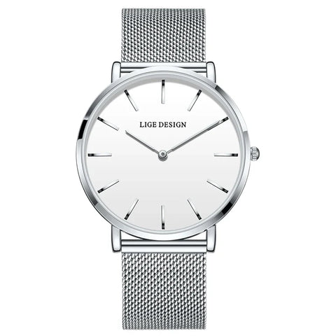 Women's Pink Dial Mesh Band Slim Stainless Steel Watch - silver white