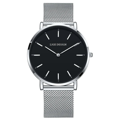 Women's Pink Dial Mesh Band Slim Stainless Steel Watch Sale