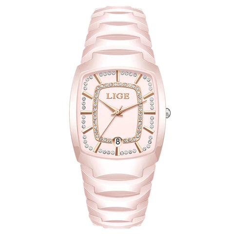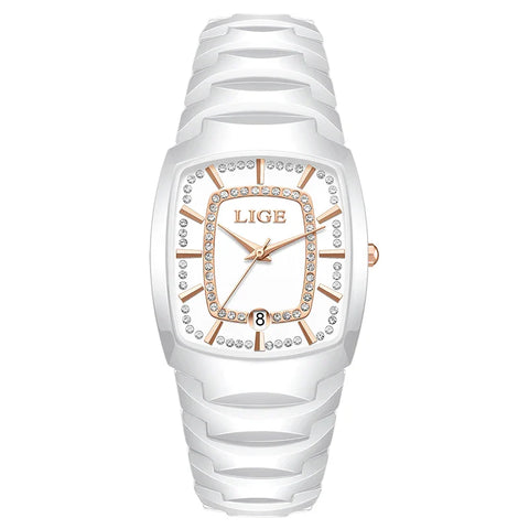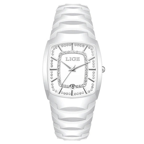 A refined women's watch designed to pair everyday comfort with eye-catching elegance. Smooth ceramic bracelet links and crystal accents give a luxury look that still feels light on the wrist — perfect for daily wear or a special-occasion gift.