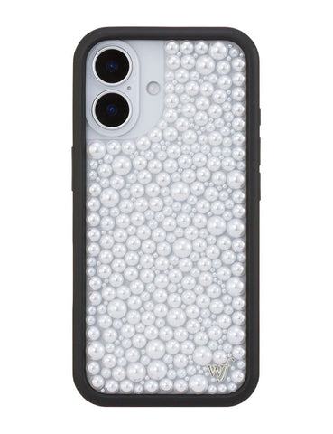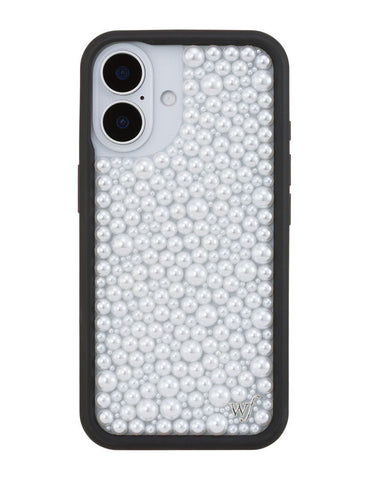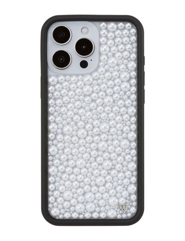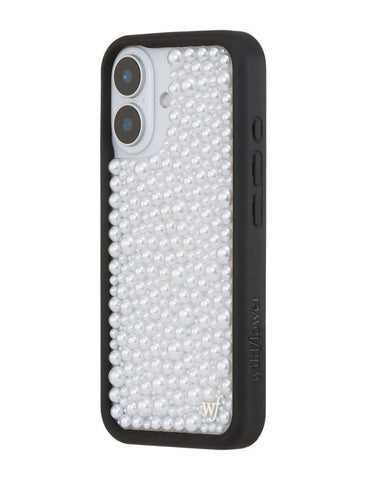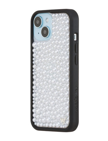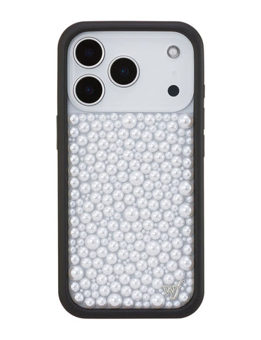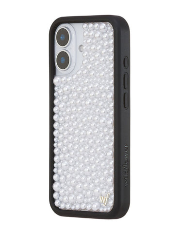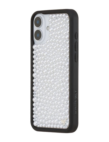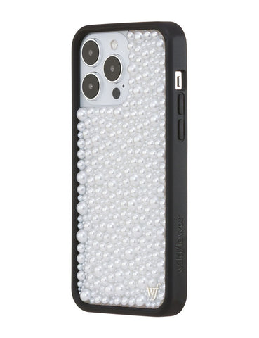 Our Pearl iPhone case | White captures timeless elegance with a modern edge. Embellished with luminous white pearls, it transforms your phone into a piece of wearable art. Pair with our Pearl Wristlet or Pearl Crossbody for a polished, couture-inspired look. A limited-edition design made for those who live in luxury, every day.