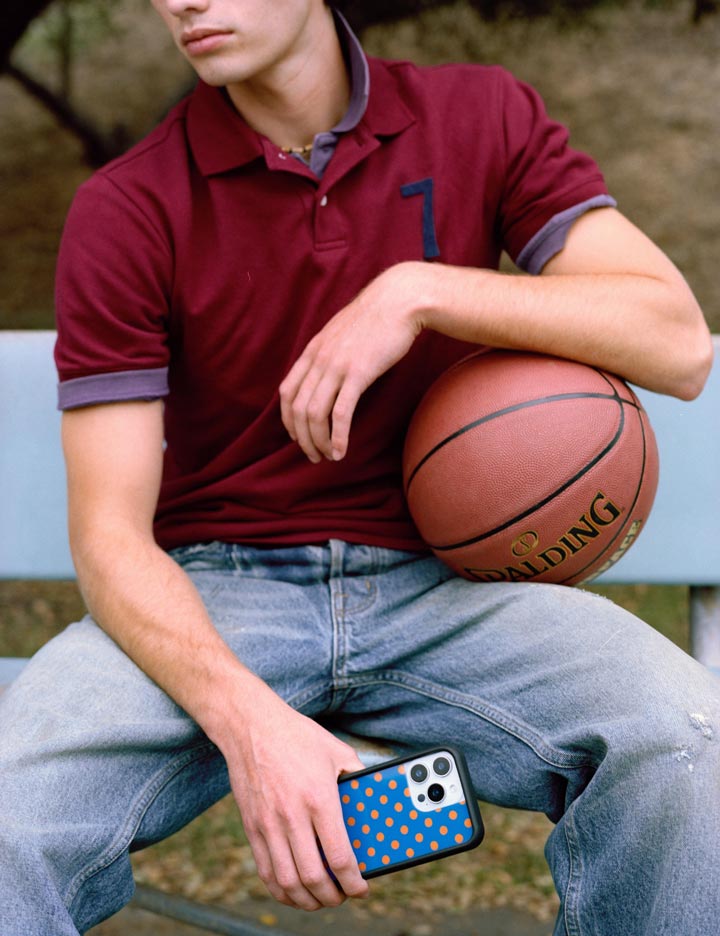 Sporty and fun. Our Polka Dot iPhone case | Blue and Orange combine a bold blue backdrop with bright orange dots for the perfect burst of color. Eye-catching, fresh, and basically the ultimate statement case for when you want your phone to stand out as much as you do.