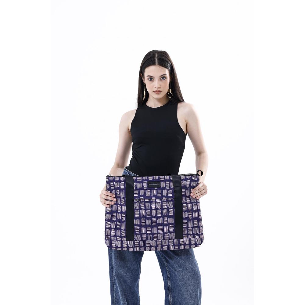 Crafted from eco-conscious recycled fabric in a soft purple base, featuring expressive white brushstrokes in vibrant colors — a nod to the spirit of growth and renewal embodied by Hatchards