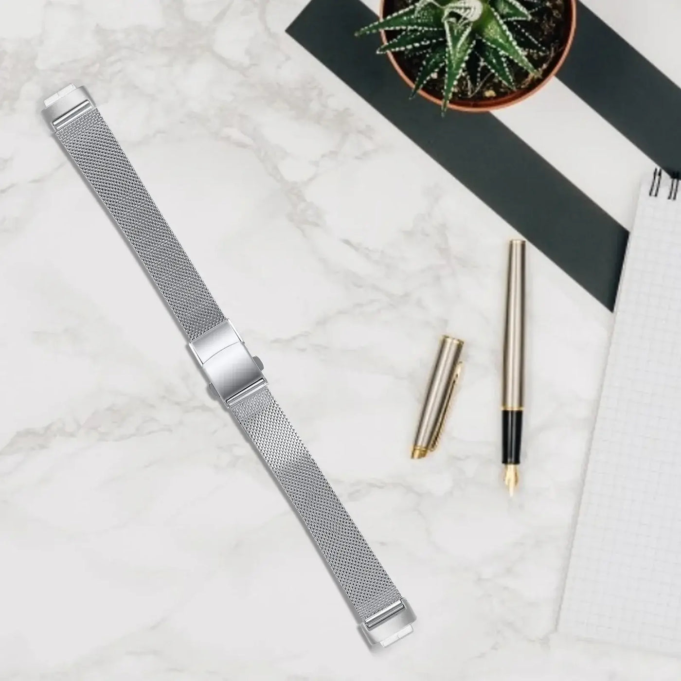 Enhance your Fitbit Inspire 3 with this sleek and lightweight thin stainless steel band from BandsCo. Designed for a refined, minimalist look, this replacement smartwatch band offers both comfort and style, ensuring you can wear it throughout your day without any bulk.