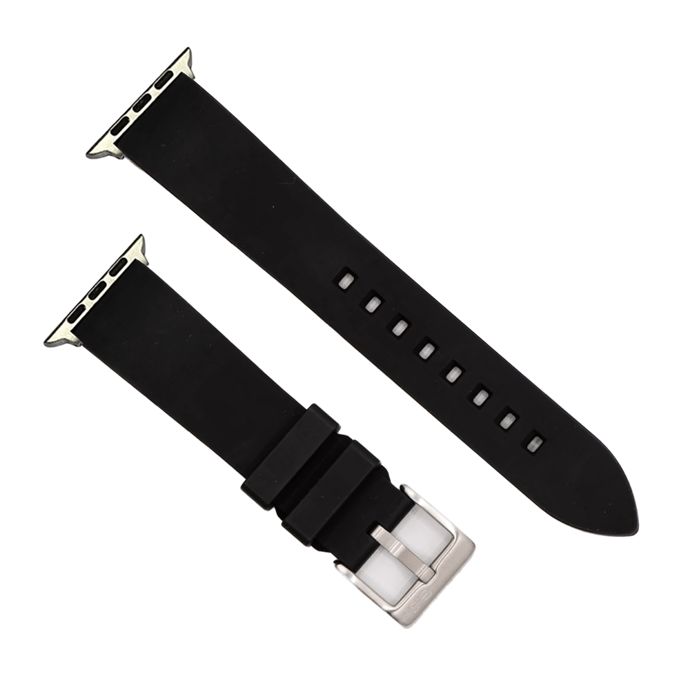 Apple Band - Smooth Rubber - Black - Small Apple Watch (38/40/41/42mm) / Silver Adapter + Brushed Buckle