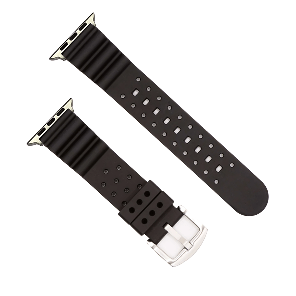 Apple Band - Sport Rubber - Black - Small Apple Watch (38/40/41/42mm) / Silver Adapter + Brushed Buckle