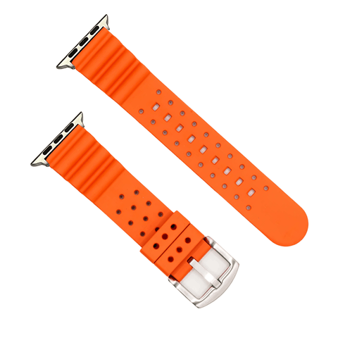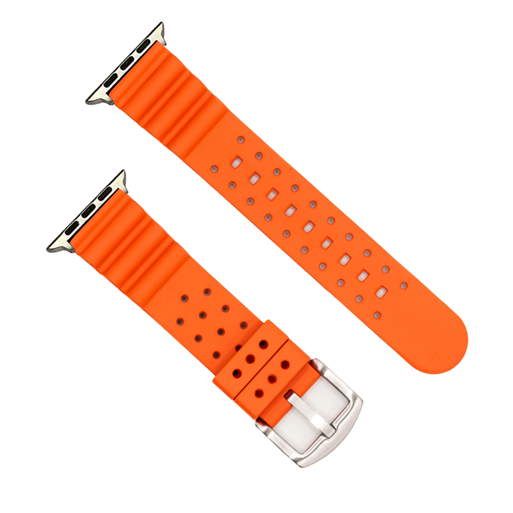 Apple Band - Sport Rubber - Orange - Small Apple Watch (38/40/41/42mm) / Silver Adapter + Brushed Buckle