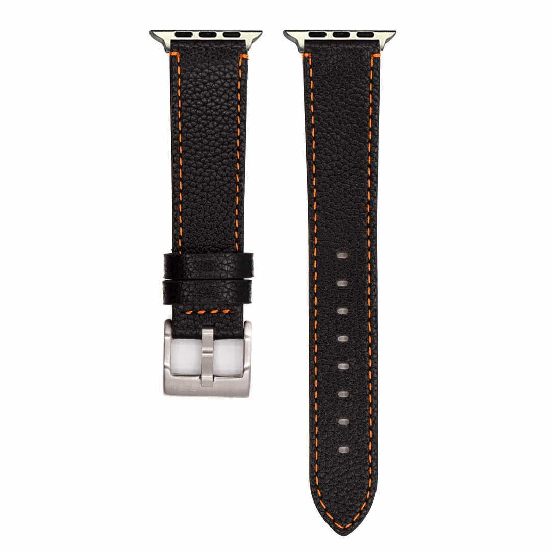 Apple Band - Leather Contrast Stitch - Black with Orange Sale