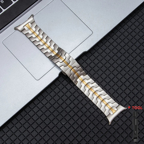 If you are searching for a "Samsung Watch Ultra band," "47MM watch straps," or a "stainless steel smartwatch accessory," you have found the right product. This strap is more than just an accessory; it's a style element that completes your personal signature while maintaining your watch's functionality. You can choose the classic simplicity of the "Silver" color for daily use, the splendor of "Gold" or "Rose Gold" for special occasions, or the power of "Black" and "Titanium" for your sports activities.