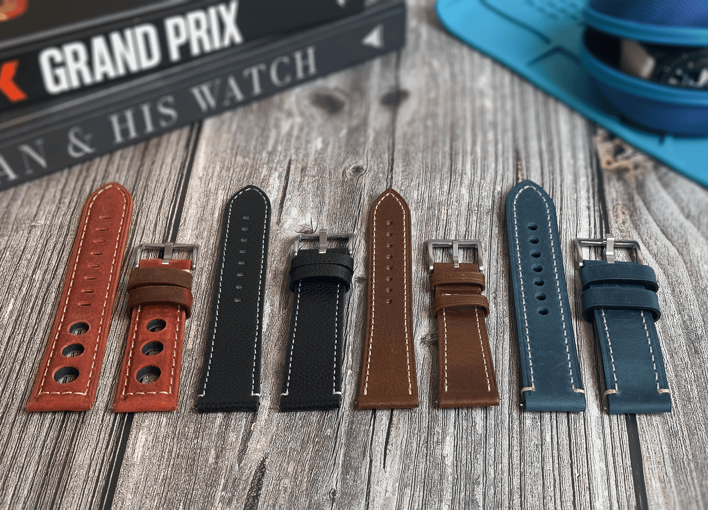 Leather Border Stitch Blue Jeans – Made from rugged Crazy Horse leather, this blue strap embodies a relaxed, distressed look that only gets better with age. Complete with cream border stitching and a smooth finish, this strap adds a laid-back charm to your timepiece, effortlessly blending casual style with robust durability.