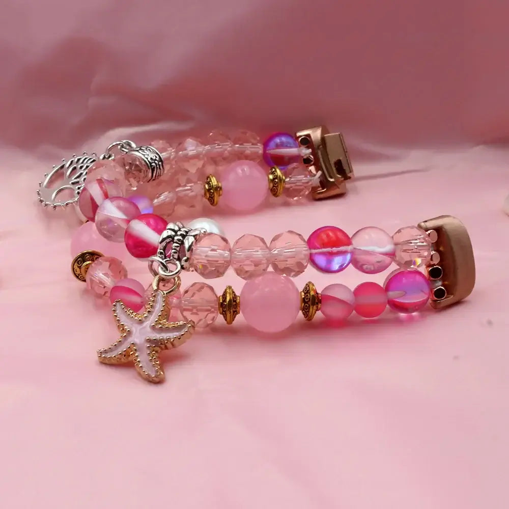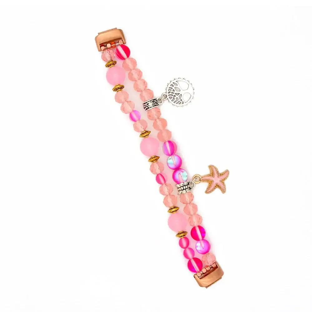 Fitbit Inspire 3 Beaded Elastic Band – Stylish Stretch Bracelet Strap - pink