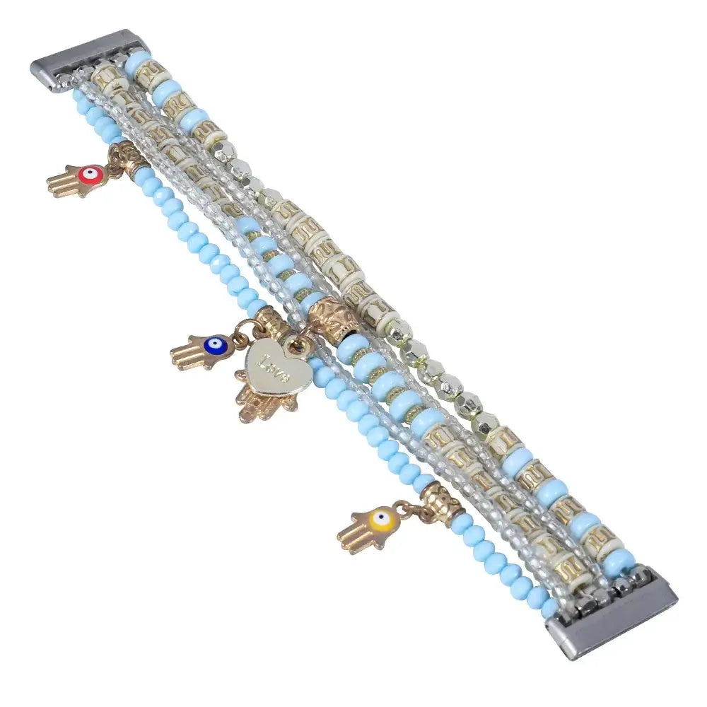 Fitbit Versa & Sense Beaded Elastic Band - Stylish Boho - blue