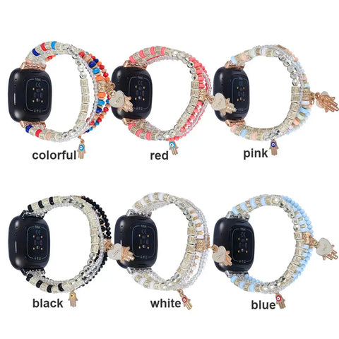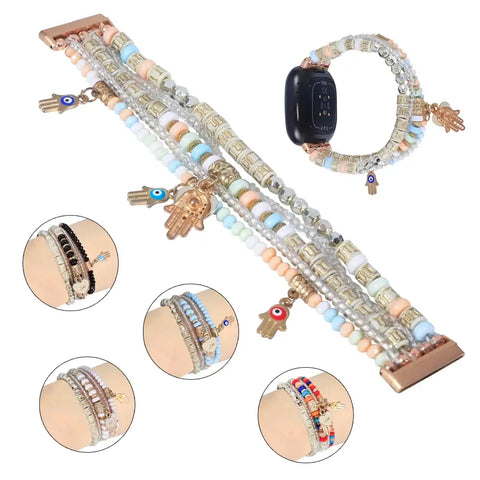 Fitbit Versa & Sense Beaded Elastic Band - Stylish Boho En solde