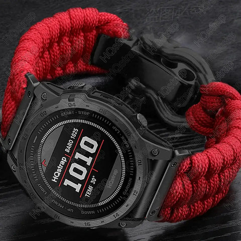 Garmin Braided Nylon Strap - QuickFit Durable Design - red-silver / 26mm
