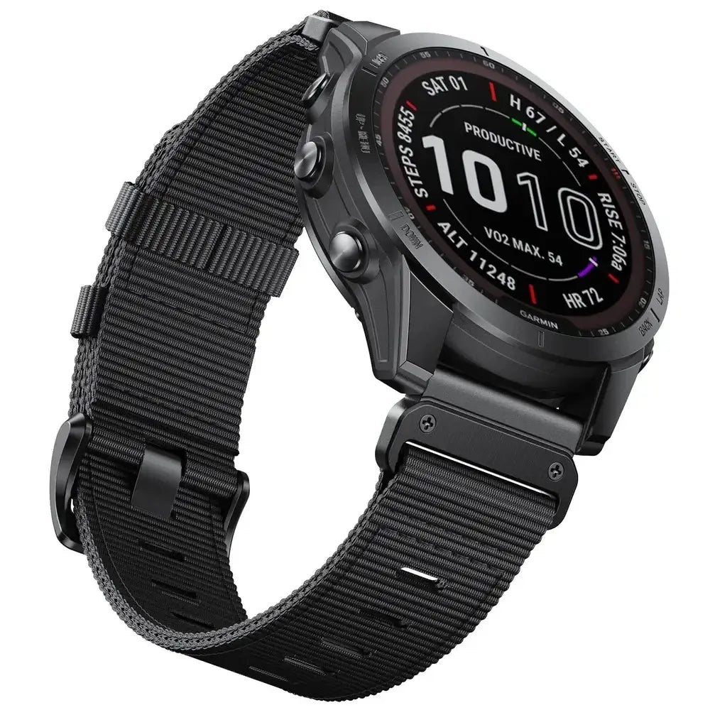 Discover the perfect blend of style and functionality with the Garmin Tactical Nylon Strap. This durable replacement smartwatch band is designed to enhance your Garmin while providing exceptional comfort for everyday wear. Whether you're tackling your next adventure or heading to the gym, this band ensures your smartwatch stays secure and stylish.