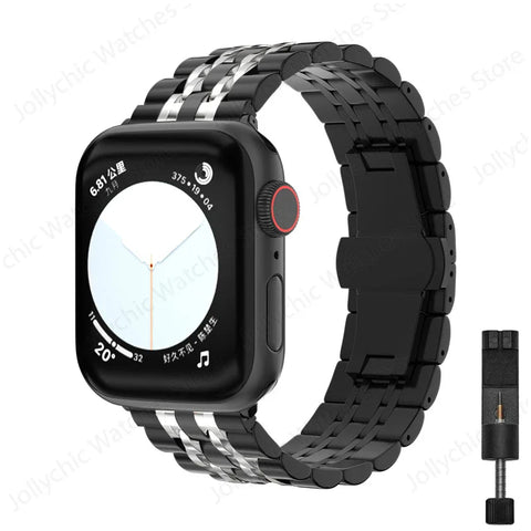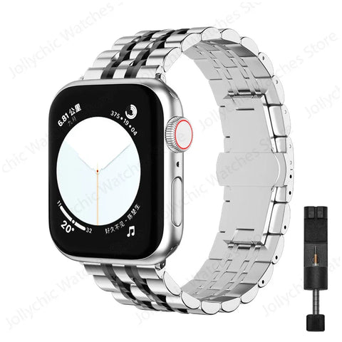 Apple Watch Stainless Steel Band - Elegant, Durable Design - black silver-tool / 38mm 40mm 41mm (42mm S10)