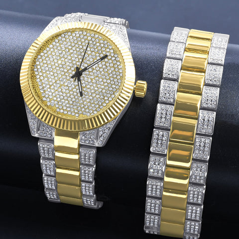 42mm CZ Stainless Steel Pave Watch With Metal Bracelet