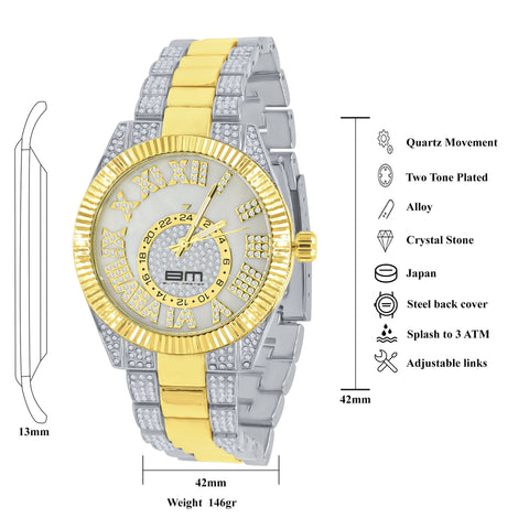 42mm Two Tone CZ Watch And Bracelet Set Luxury Dress