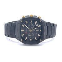 Overview: Sleek, bold and designed to turn heads — this black stainless iced out watch pairs a brushed octagonal case with a textured black dial and gold accents for a sharp, modern look. It’s a comfortable everyday chronograph that adds a touch of luxury without weighing you down.