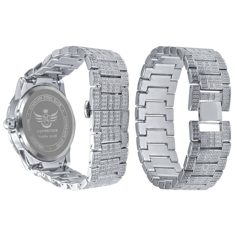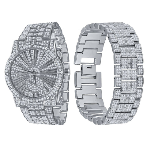 Crystal Iced Dress Watch And Bracelet Set Polished Silver