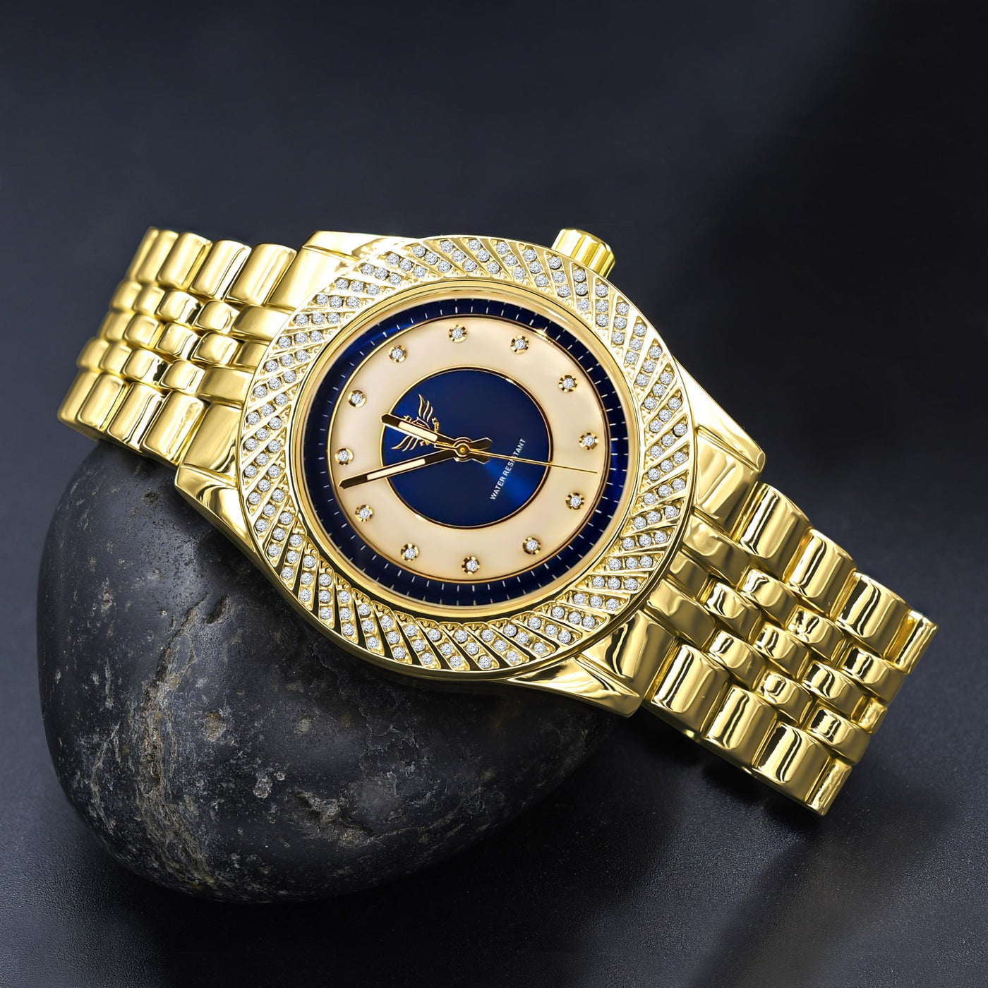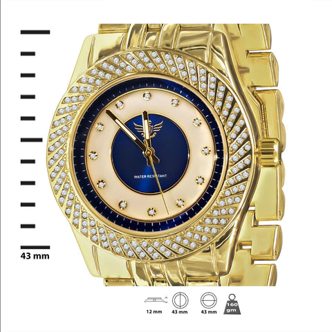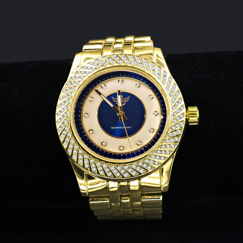Gold Iced Out Hip Hop Watch Blue Dial Quartz Movement