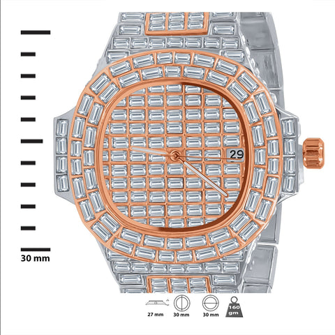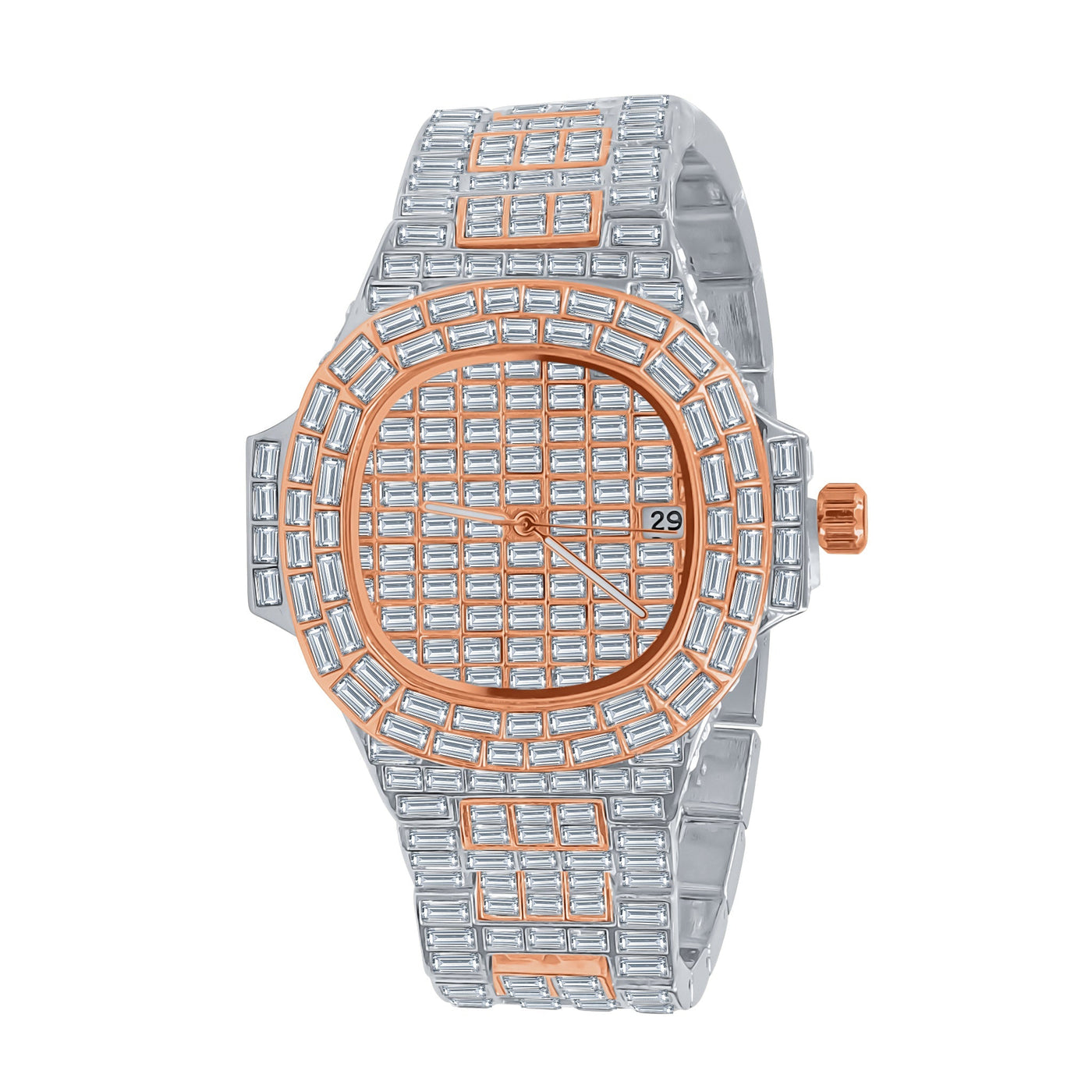 Polished two-tone detailing and a detailed dial — luxury-inspired look that pairs well with streetwear, suits, or layered jewelry for a custom drip.