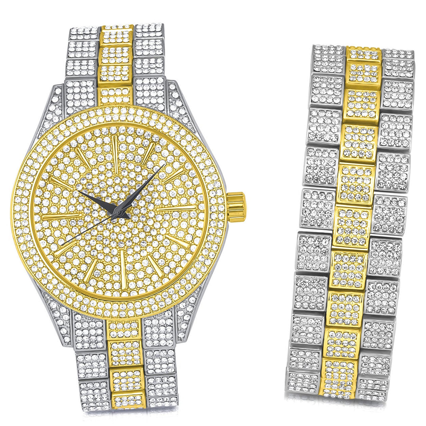 Rhinestone Iced Out Watch And Bracelet Set Bling Luxury En solde