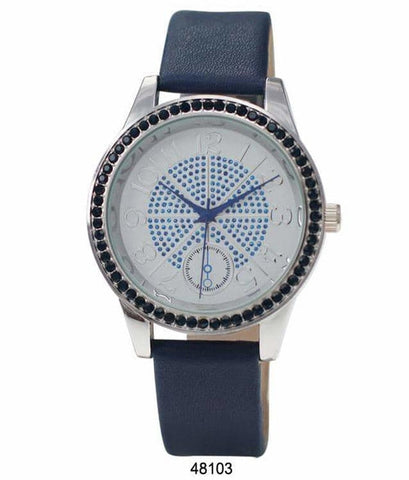 Women's Crystal Bezel Leather Strap Dress Watch Elegant - Silver/Black/Black