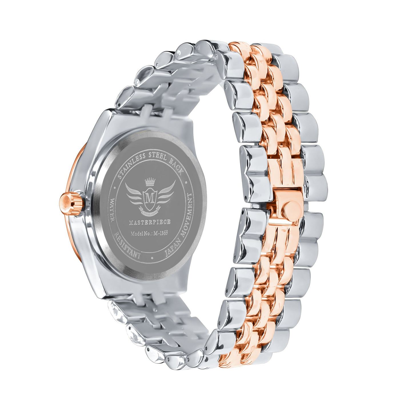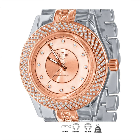 Women's Two Tone Rose Gold Crystal Bezel Dress Watch