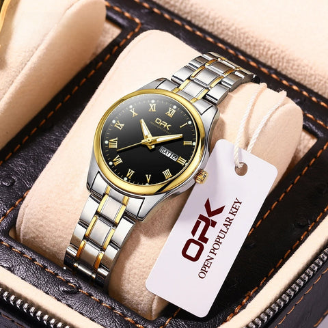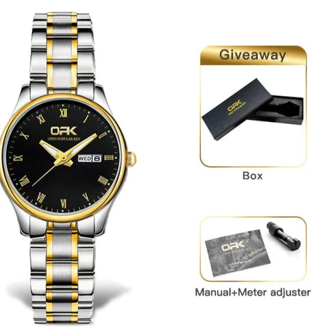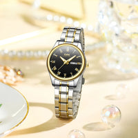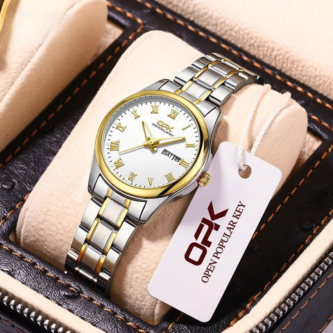 Women's Two Tone Stainless Steel Watch With Day Date - sliver white / Ships From Within USA