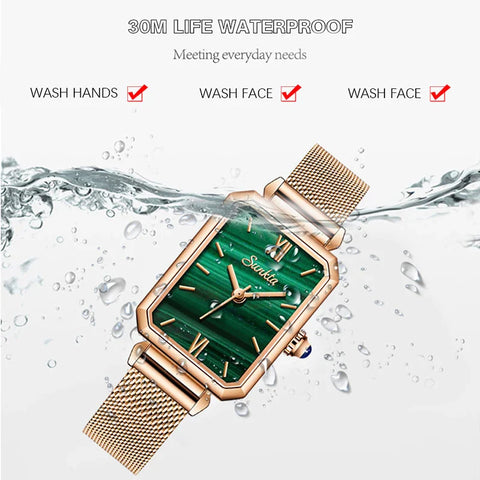 Women's Rectangular Green Dial Mesh Band Quartz Watch En solde