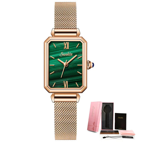Women's Rectangular Green Dial Mesh Band Quartz Watch