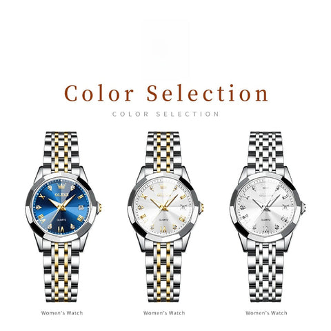 Women's Two Tone Stainless Steel Quartz Watch With Date - silver gold blue / Ships From Within USA